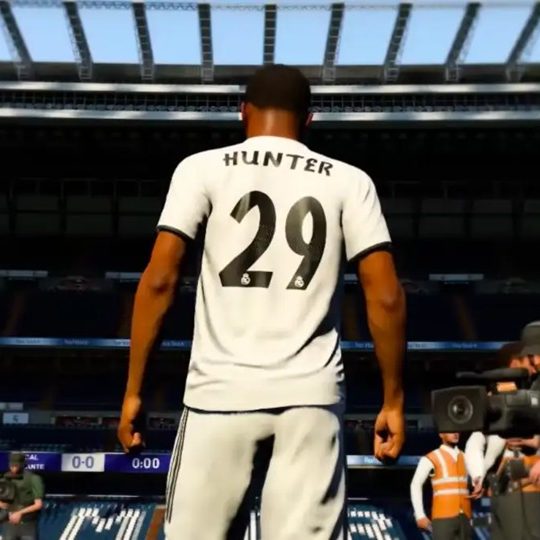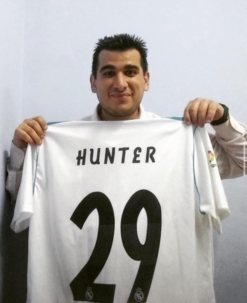 me compré la camiseta del Real Madrid y le mandé a estampar Hunter y el 20, como correspondía al cierre del FIFA 19.